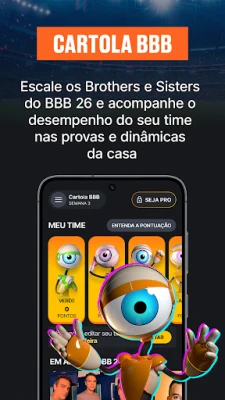 Mas a emoção do Cartola agora extrapola os gramados e invade a casa mais vigiada do Brasil. Apresentamos o Cartola BBB, uma extensão inovadora onde você cria seu time com os participantes do Big Brother Brasil 26. Monitore cada movimento, cada prova de liderança, cada paredão e as dinâmicas mais impactantes do reality. A performance dos seus escolhidos no programa se converte em pontos, oferecendo uma maneira completamente nova de torcer e interagir com o BBB 26. É a sua chance de demonstrar quem realmente domina as estratégias e o comportamento dos brothers e sisters, transformando a audiência em um jogo estratégico e envolvente.