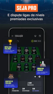 Crie o seu time de futebol dos sonhos com os craques do Brasileirão, Liga dos Campeões e outras grandes ligas. Desafie seus amigos e milhares de jogadores em emocionantes disputas para mostrar quem realmente entende de futebol e estratégias.
