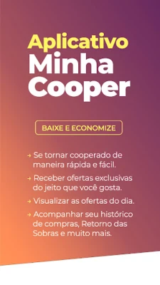Minha Cooper é o aplicativo da Cooper que otimiza sua relação. Acesse ofertas exclusivas personalizadas, monitore seu histórico de compras, confira seu extrato de sobras e conecte-se com a Cooper de forma simples. Tenha sua conveniência e economia em um só lugar.