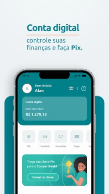 O Cooper Bank oferece um cartão múltiplo de crédito e débito com conta digital. Controle suas finanças, faça Pix, pague contas e realize compras com aprovação rápida. Desfrute do cartão virtual imediato para um uso prático, seguro e integrado ao programa Vai de Visa.