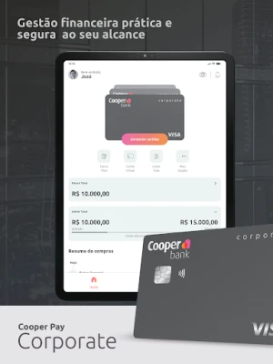 Com o Cooper Bank Corporate, sua empresa simplifica a gestão financeira com controle total em um ambiente digital. Gerencie cartões empresariais, visualize faturas e configure limites personalizados em tempo real. Uma ferramenta prática e segura, focada no crescimento do seu negócio.