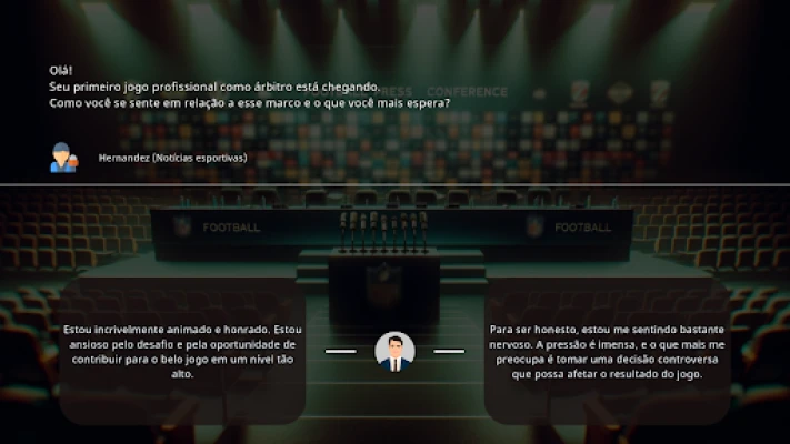 Construa uma carreira lendária no universo do futebol, moldando sua própria identidade profissional. Com Football Referee Simulator, você não apenas participa; você evolui. Acompanhe seu progresso através de notícias pós-jogo detalhadas, persiga prêmios de prestígio e aprimore continuamente suas estatísticas pessoais. Trace seu próprio caminho rumo ao estrelato, transformando-se de um novato a um ícone da arbitragem.
