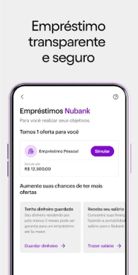 Experimente uma nova perspectiva sobre suas finanças com o Nubank, a vanguarda tecnológica que lidera o setor de serviços financeiros em toda a América Latina. Nosso aplicativo foi concebido para espelhar a simplicidade e a transparência que você merece, eliminando a burocracia e as complexidades. Aqui, você está no comando, com uma experiência financeira construída sobre a clareza, sem asteriscos, letras miúdas ou tarifas inesperadas, garantindo que sua vida financeira seja tão fluida quanto deve ser.
