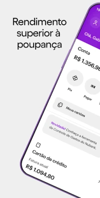 Com o Nubank, um universo de possibilidades se abre para você. Gerencie sua NuConta gratuita e desfrute da liberdade de um cartão de crédito internacional, sem anuidade e com aceitação global. Tenha seu limite restabelecido na hora do pagamento e descubra como seu dinheiro guardado pode se converter em limite de crédito. Explore rendimentos que superam a poupança, com acesso a diversas opções de investimentos inteligentes e as Caixinhas, que auxiliam na organização de suas metas financeiras e no crescimento de seu patrimônio.