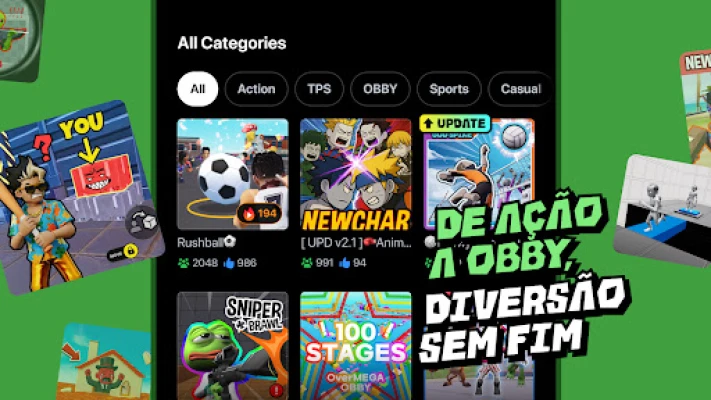 Descubra OVERDARE: Jogos de Anime! Crie seu avatar 3D, explore novos jogos e viva aventuras sem fim. Participe de batalhas intensas, desafios de parkour e esportes com amigos. O destino perfeito para fãs de anime jogarem juntos!