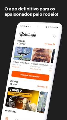 Rodeiando é o hub definitivo para o universo do rodeio. Organize e divulgue seus eventos, acompanhe transmissões ao vivo e nunca perca um laço com o calendário completo. Conecte-se à comunidade campeira e viva toda a emoção das arenas, onde quer que esteja.