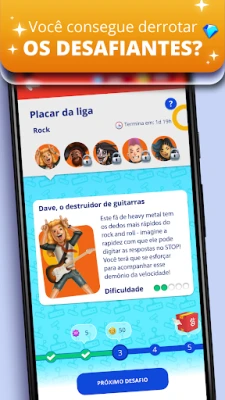 STOP 2 eleva a experiência a um novo patamar com um formato multiplayer dinâmico e um tabuleiro online inovador. Desafie amigos ou teste suas habilidades contra adversários de todo o mundo em confrontos eletrizantes de um contra um, onde a velocidade e a precisão ditam o ritmo. Com mais de 200 categorias distintas, o jogo garante que a diversão nunca tenha fim, oferecendo uma variedade de temas que expandem seu conhecimento a cada partida. É a companhia ideal para qualquer momento, transformando pausas em oportunidades para aprimorar seu vocabulário e sua inteligência.